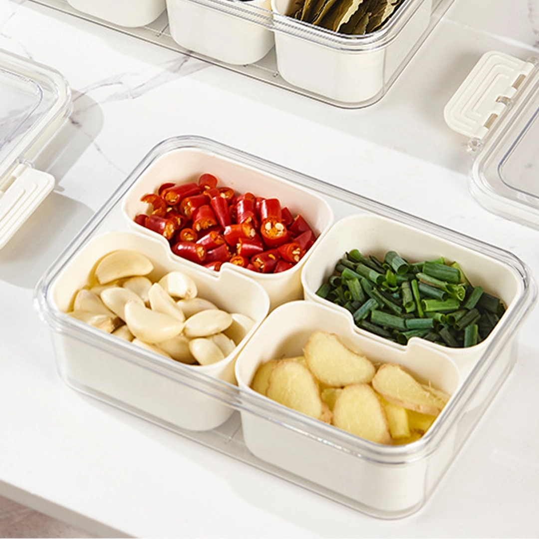A Caixa de Conservação com 4 Divisórias OI VIDA é perfeita para quem gosta de manter tudo bem separado e prático. Ideal para armazenar frutas, legumes, frios, snacks ou porções, tudo no mesmo recipiente e com total higiene.