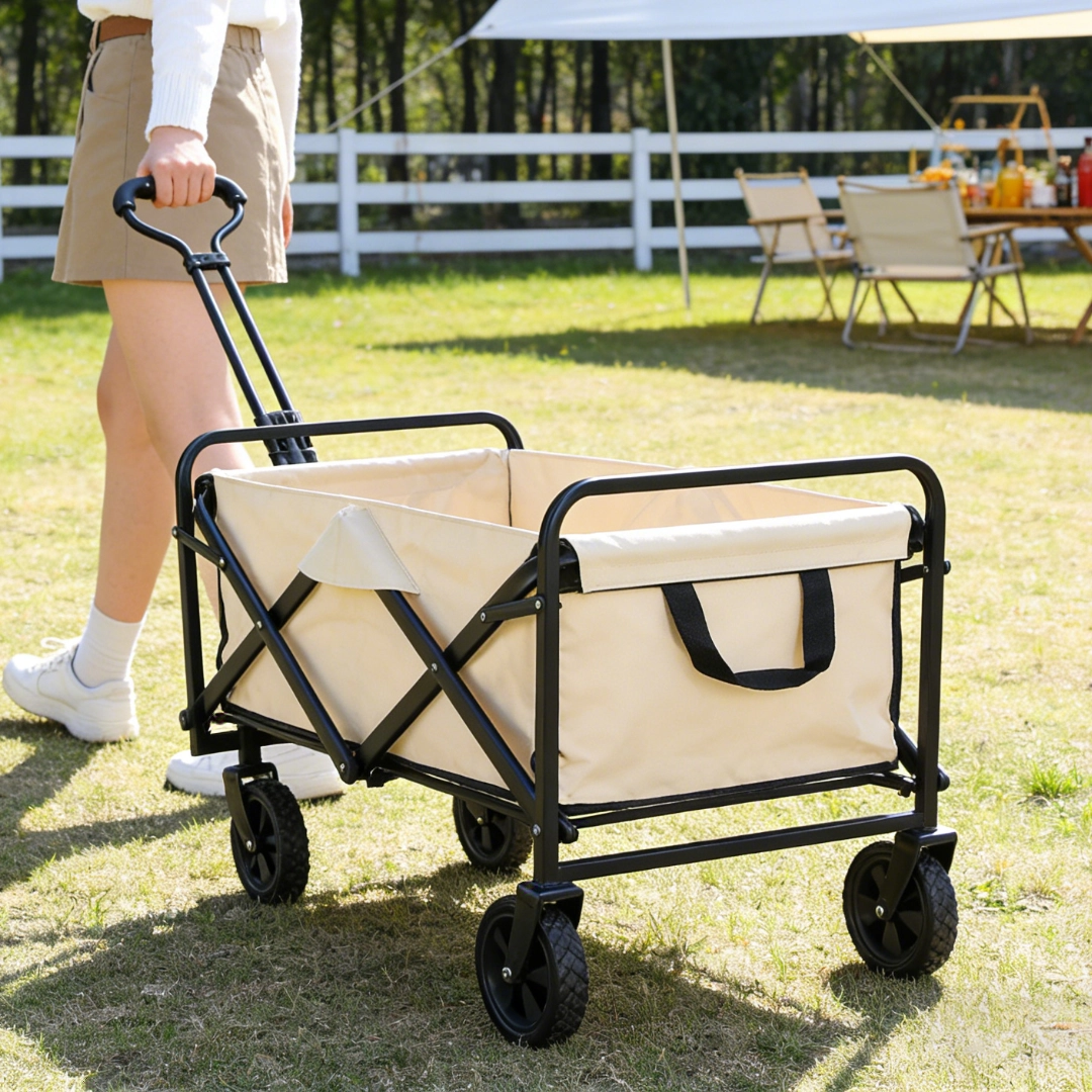 Perfeito para acampamentos, praia, feiras ou transporte de cargas volumosas. O Carrinho de Camping OIHW0008 foi projetado para oferecer mobilidade e conforto, com estrutura dobrável e material de alta durabilidade. Suporta peso com estabilidade e se guarda facilmente.