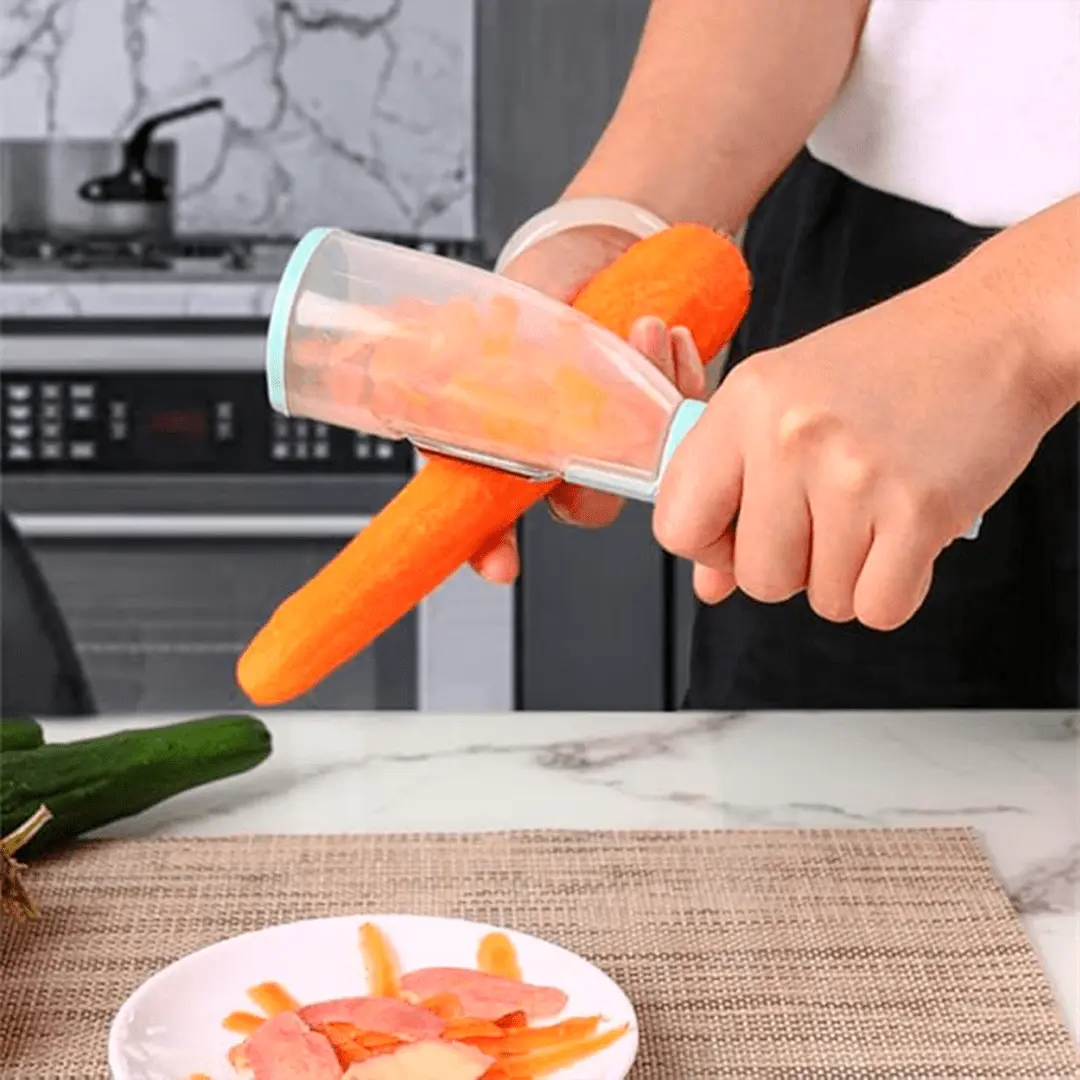 Praticidade e organização na sua cozinha! Este descascador com reservatório mede 20 x 5 x 5,5 cm, permitindo descascar frutas, legumes e vegetais enquanto coleta as cascas no compartimento acoplado. Ideal para manter a bancada limpa e agilizar o preparo das suas receitas. Compacto e funcional, é uma ferramenta indispensável no dia a dia culinário!